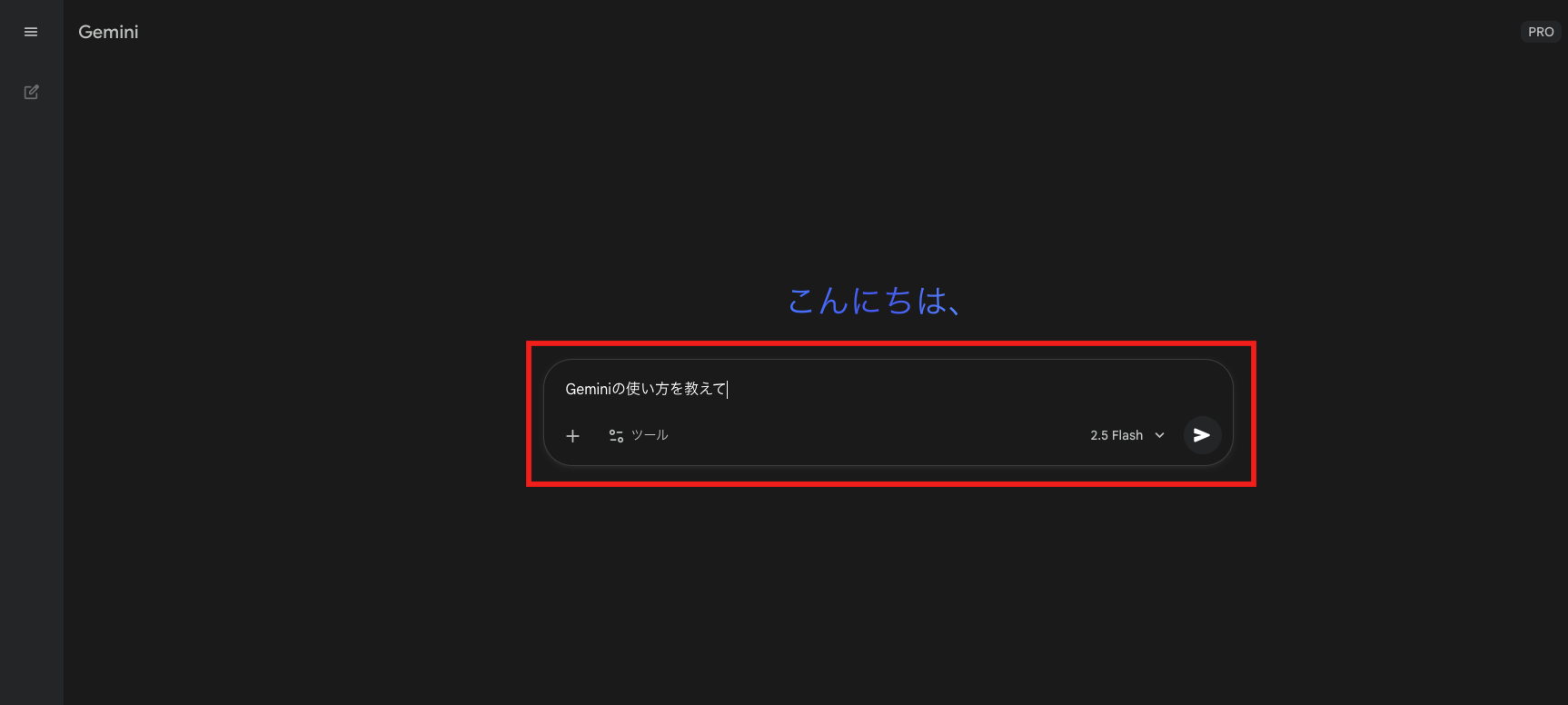 Geminiの簡単な使い方 Geminiのチャット欄に、会話するように聞きたい内容を聞くだけでOK