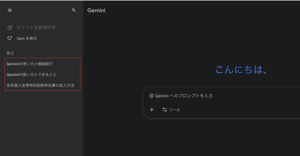 • 以前したGeminiとのやりとりも履歴が残るので、そこからスタートしたい場合は活用できる